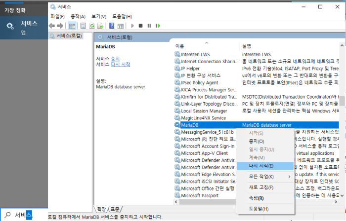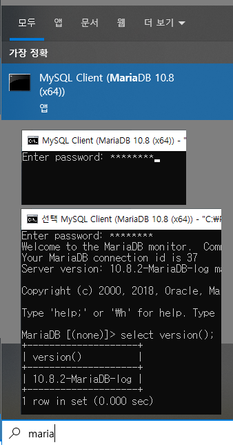 2. 윈도우즈 검색을 통해 Maria DB Client를 실행하여 설치여부를 확인합니다.