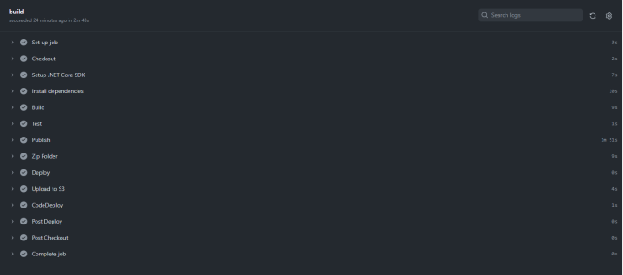 .net core 프로젝트 특성 상 어떠한 플랫폼 환경에서도 실행이 가능하기때문에 가장 비용이 적게들고 속도가 빠른 linux(runs-on: ubuntu-latest) 환경에서 실행할 것이고, 특정 브랜치(feature-CodeDeploy)에 특정 이벤트(push:)가 일어났을 때, 일련의 job들을 수행 합니다.