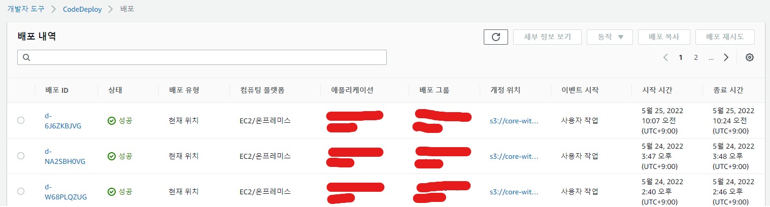 CodeDeploy과정도 도중에 실패한 이벤트가 있으면 재 배포 할 수 있고 중단할수도, 아예 처음부터(Github Action) 부터 시작할 수 있습니다.