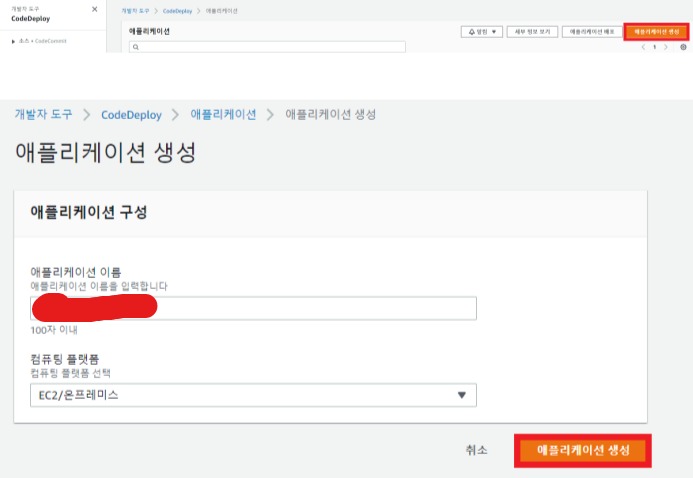 1) CodeDeploy 어플리케이션 생성