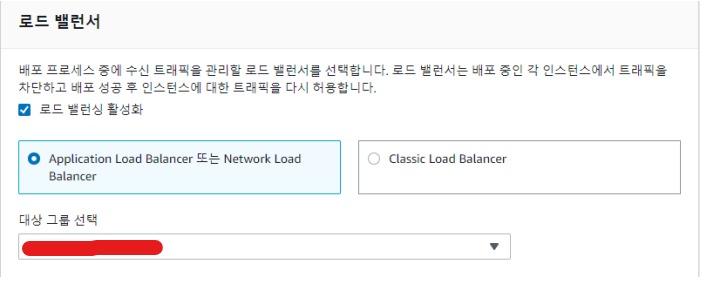 로드 밸런서 설정입니다. 배포 과정이 실행 중인 서버에는 트래픽을 할당하지 않도록 해줍니다.