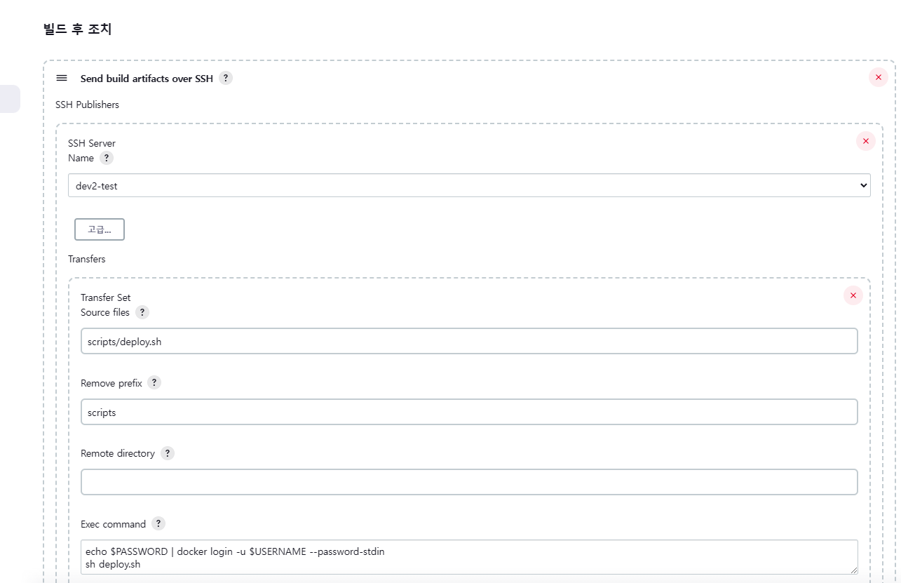 4. 프로젝트에 포함되어있는 scripts/deploy.sh를 배포서버에 ssh 전송