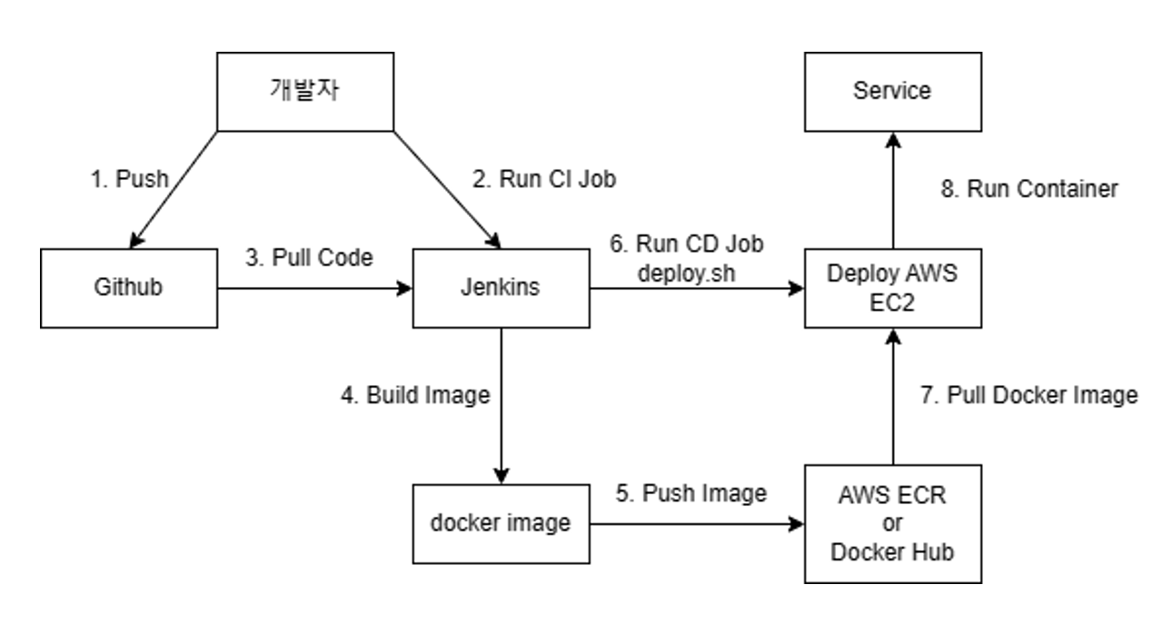 개발자가 jenkins webhook에 연결되어있는 github branch에 push(Webhook 발생)