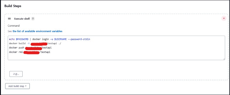 | echo $PASSWORD | docker login -u $USERNAME --password-stdin docker build -t dev/testapi ./ docker push dev/testapi docker rmi dev/testapi |