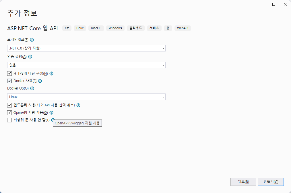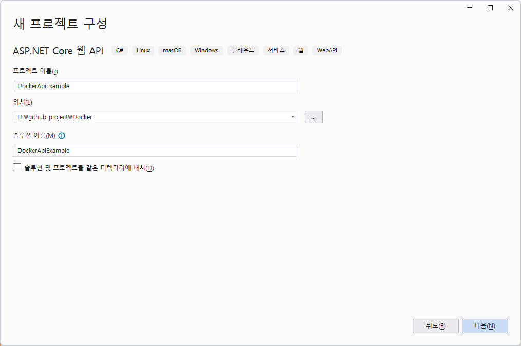 1. visual studio 2022으로 원하는 프로젝트로 생성