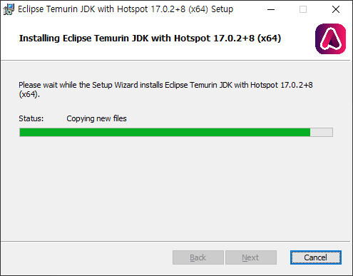 설치를 위해 다운로드 페이지(https://adoptium.net/)로 들어갑니다. 현재 최신 릴리즈인 Temurin17 (LTS)버전을 다운로드 받았습니다. 이것은 jdk-17.0.2버전 입니다. 파일명은 OpenJDK17U-jdk_x64_windows_hotspot_17.0.2_8.msi이고, 용량은 160 MB 정도 입니다.