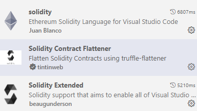 마켓플레이스에서 solidity, Solidity Contract Flattener, Solidity Extended 설치를 해줍니다.