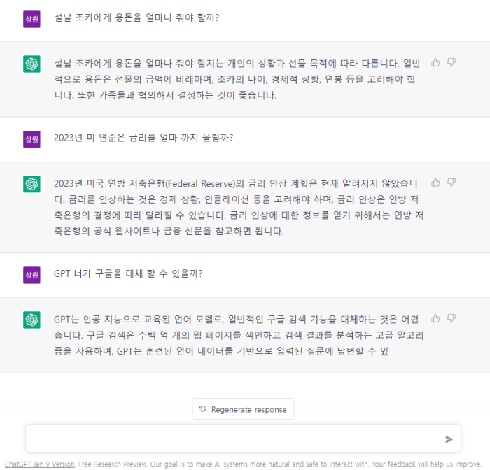 12월 출시 이후 다양한 이슈가 되고 있는 Chat GPT에 대해 시연 해본 후 의견. 영어 질문에 대한 답변은 엄청 빠른 속도로 다양한 답변을 받을 수 있다. 그러나 한글은 데이터 양이 많지 않아 아직 속도가 조금 느리고 부정확한 결과 나 올 수 있다. 하지만 생각 이상으로 뛰어난 결과를 볼 수도 있으니, 가능 하면 영어로 질문도 해보고 한국어로 질문도 해보길 바란다. 아래 내용은 실제 가입 후 Chat GPT로 대화한 내용이에요 일론 머스크 테슬라 CEO는 "이제 구글 검색을 Chat GPT가 대체할 것"이라고 전망했다. 구글은 12월 코드 레드(매우 심각한 위기 상황)를 선언하고 대응책 마련에 나섰다. Chat GPT 침투 속도 출시 5일만에 가입자 100만명 돌파. 이 속도는 출시 75일만에 10..